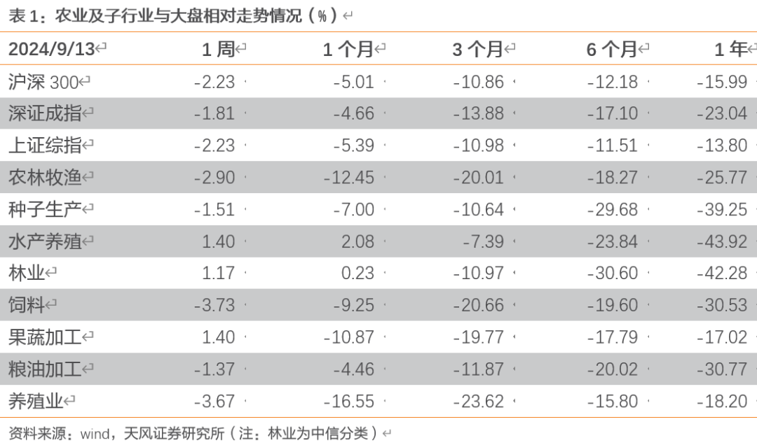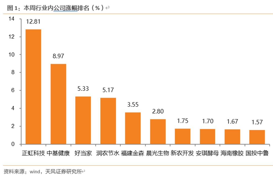 1)种子:十四届全国人大常委会第十一次会议于9月13日闭幕,会议决定任命韩俊为农业农村部部长。9月10日,农业农村部召开农业科技企业座谈会,时任部党组书记的韩俊主持会议,先正达、隆平高科、登海种业、大禹节水等企业负责人参会交流;会议强调“大力培育农业科技领军企业,鼓励引导农业科技领军企业在突破关键核心技术和发展农业新质生产力中发挥好骨干作用,加快推进高水平农业科技自立自强”。会前,韩俊到农芯科技、大北农调研了农业生物新品种培育等技术。我们认为,生物育种在提高作物产量、品质、抗逆性等方面具备优势;随着粮食安全的重要性日益突显,转基因玉米商业化种植有望加速推广,头部公司凭借良好的业务基础和丰富的转基因技术储备,有望进一步提升竞争力。